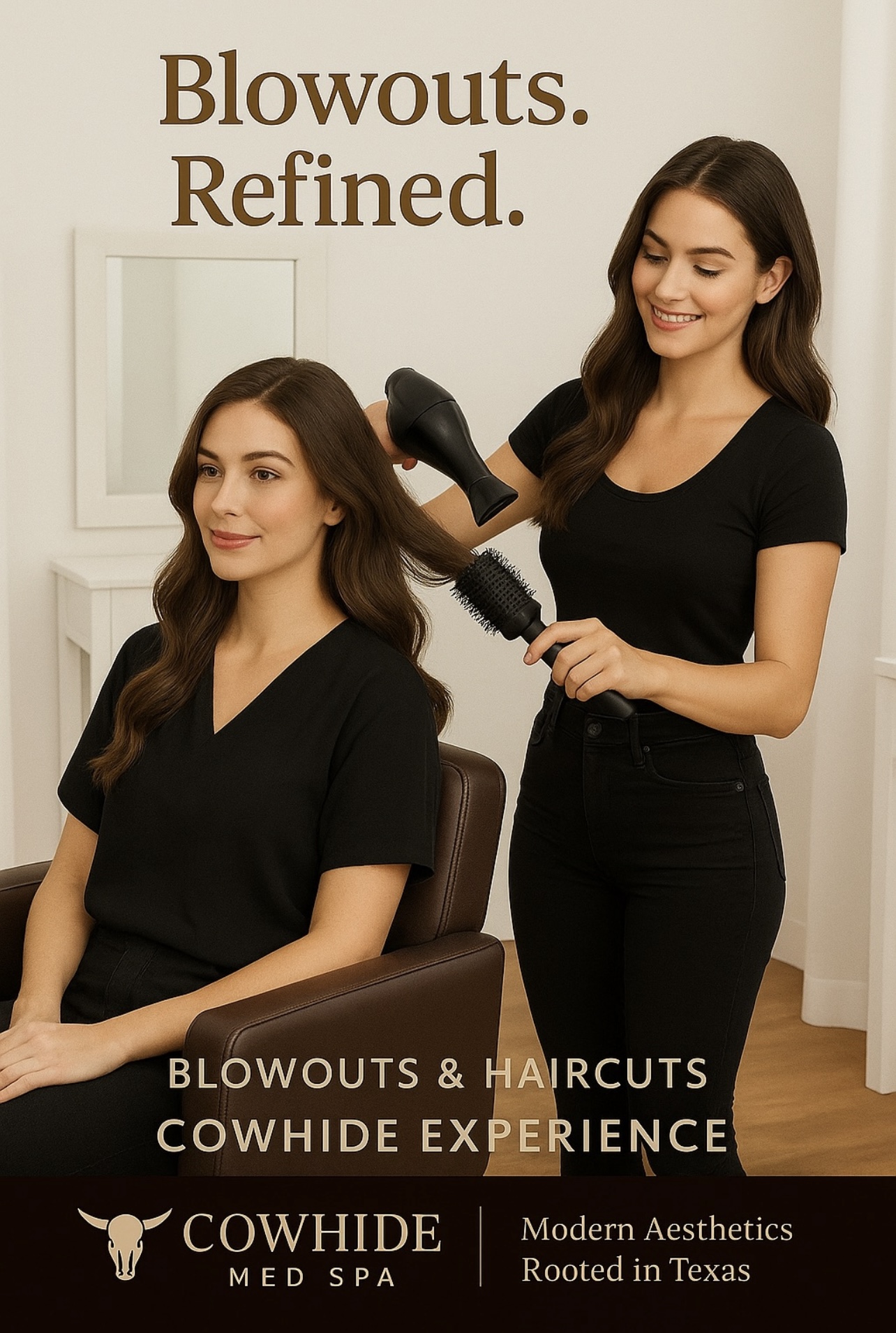 At Cowhide, every strand is shaped with intention. Our salon and barber services blend modern technique with Texan elegance — from precision cuts, custom color, and signature blowouts to tailored men’s cuts, clean fades, and refined beard work. Each visit includes warm aromatic towels, nourishing oils, and meticulous detailing. Polished, confident, and effortlessly refined.